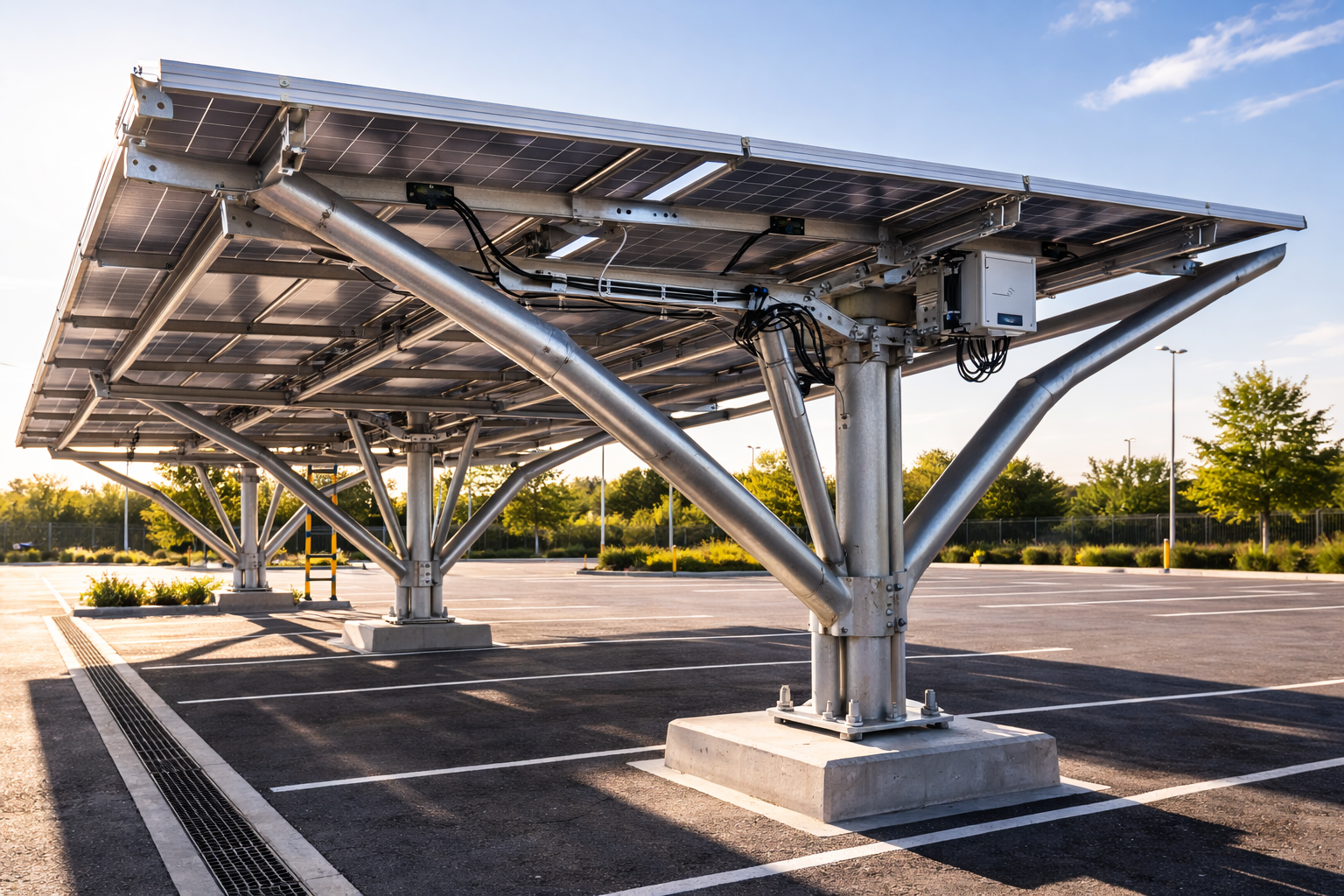 Conçues en acier galvanisé ou thermolaqué, nos ombrières sont dimensionnées pour résister aux contraintes climatiques et mécaniques les plus exigeantes. Les modules photovoltaïques à haut rendement assurent une production énergétique fiable et durable.